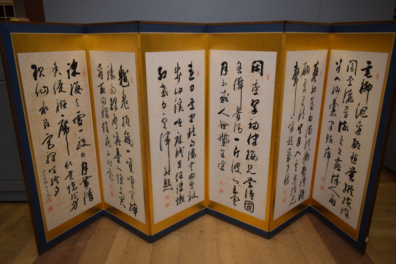 A SIX PANEL JAPANESE SCREEN (A/F) (170H X 64W EACH PANEL)