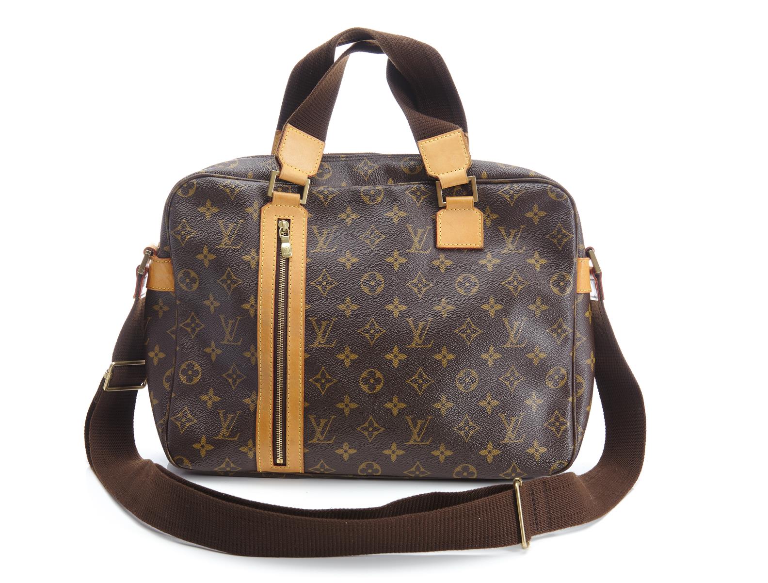 Styled in brown monogram coated canvas with golden brass metal hardware, 34 x 25 x 8.5cm.