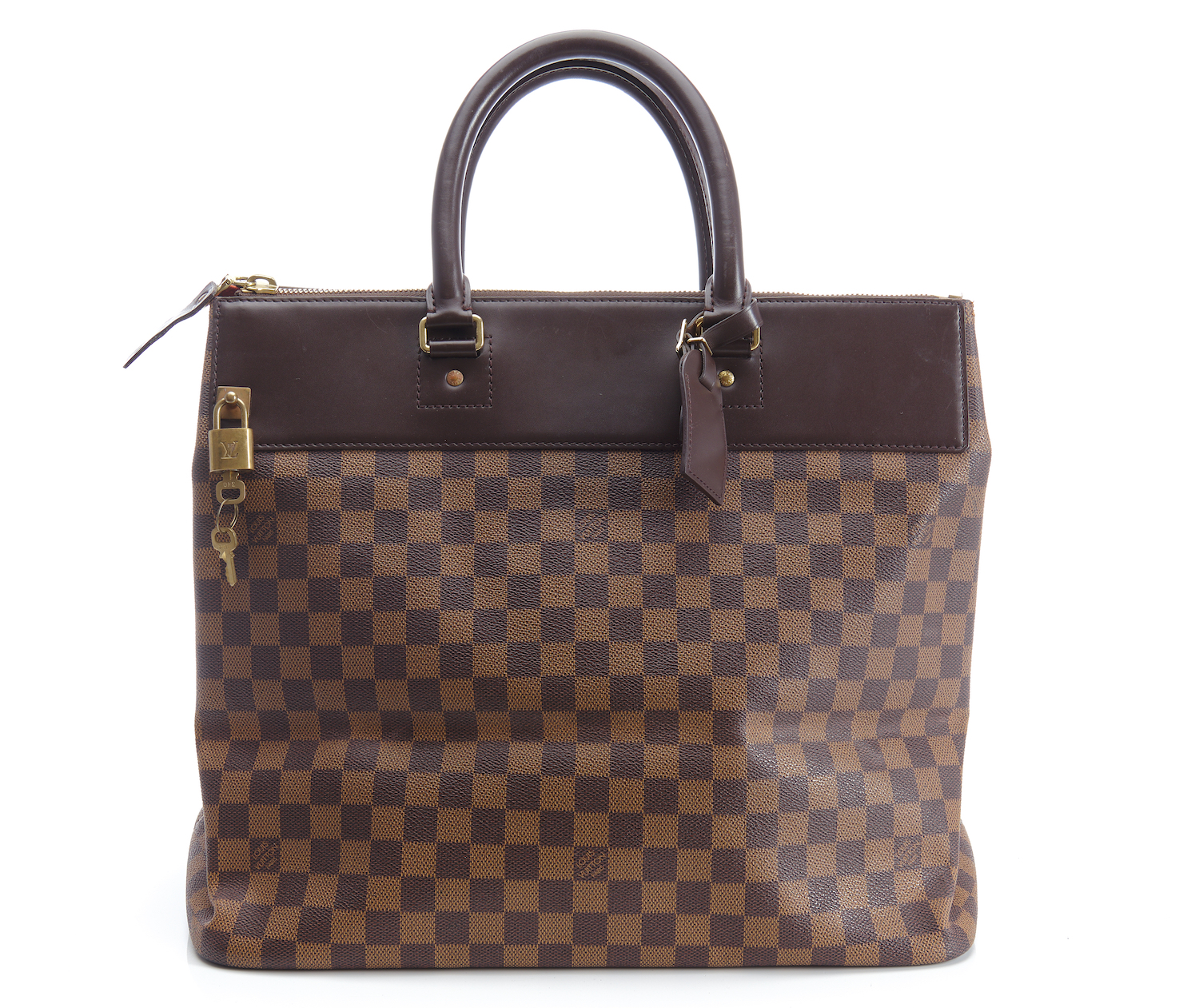 Styled in brown Damier Ebene coated canvas with golden brass metal hardware, 40 x 32 x 22cm.