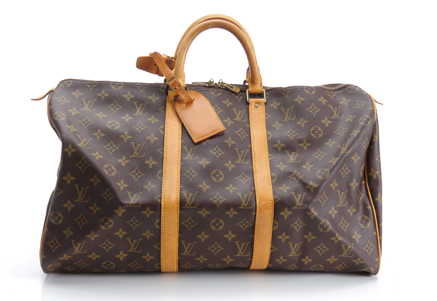 Styled in brown monogram coated canvas with golden brass metal hardware, 50 x 26 x 22cm.