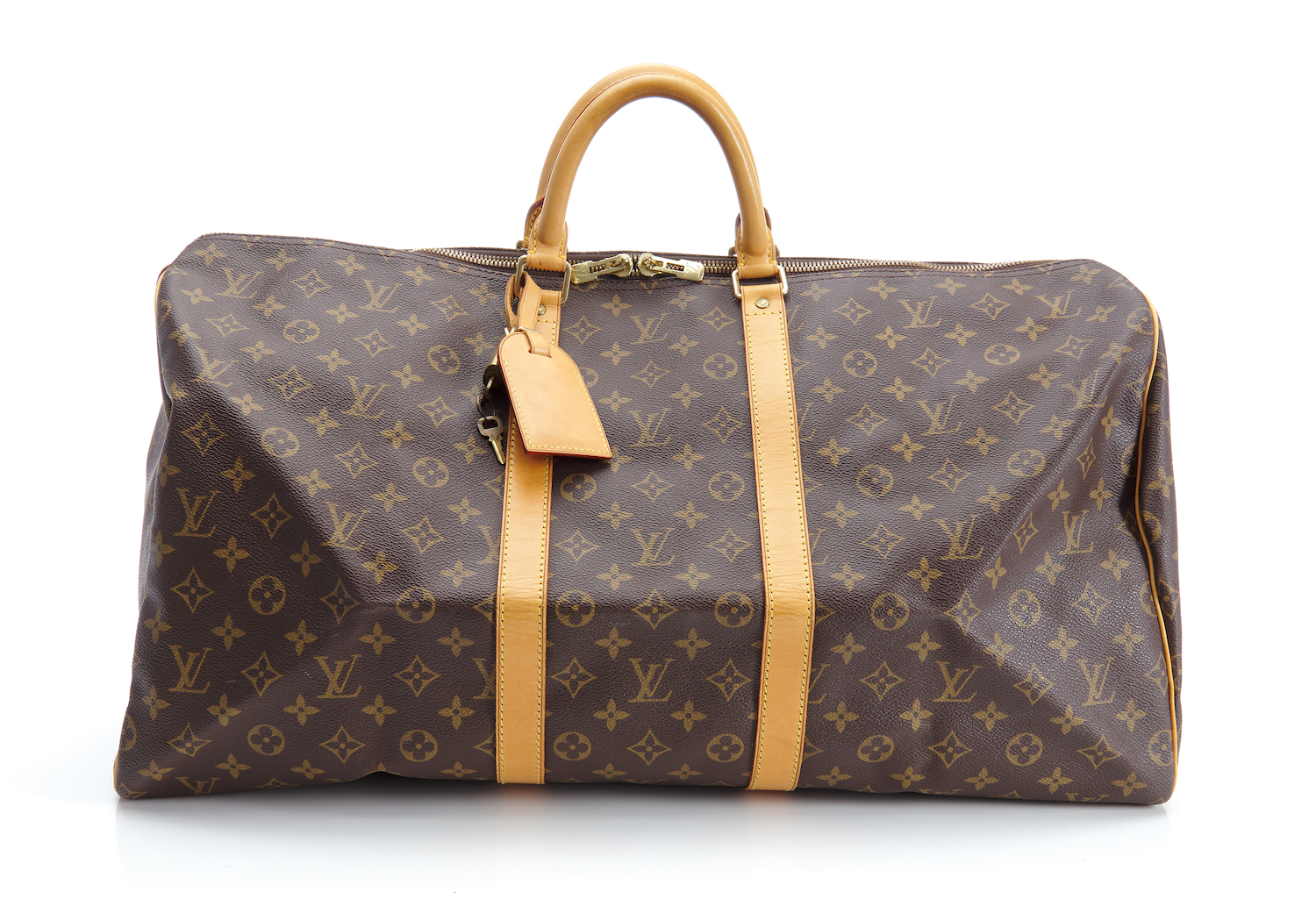Styled in brown monogram coated canvas with golden brass metal hardware, 55 x 28 x 25cm.
