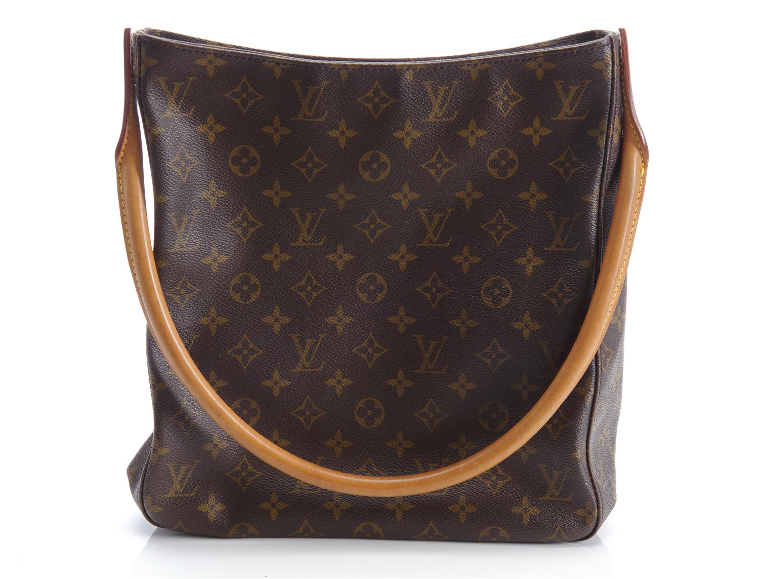 Styled in brown monogram coated canvas with golden brass metal hardware, 28 x 32 x 11cm.