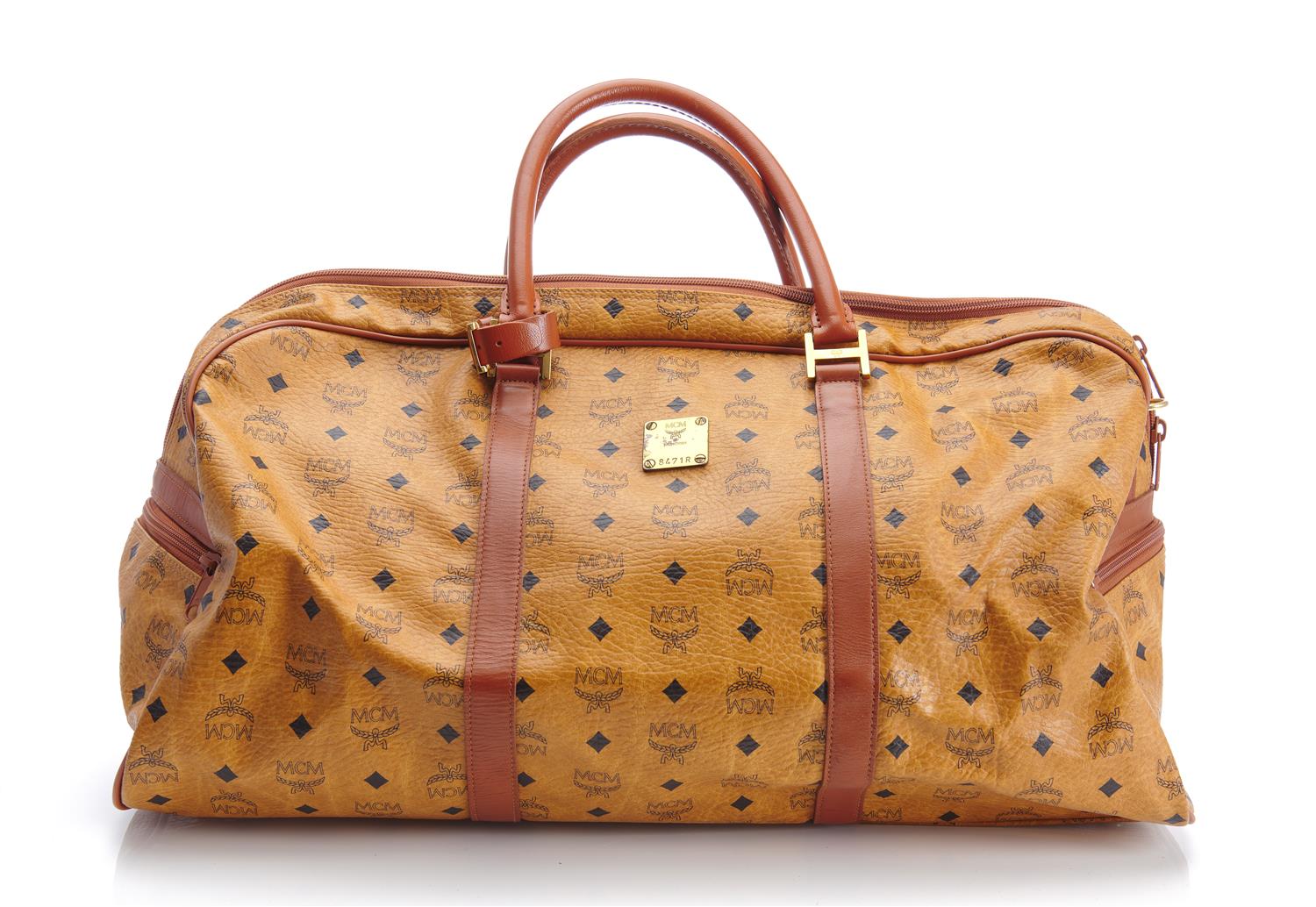 Styled in cognac visetos coated canvas with gold metal hardware, 55 x 33x 22cm.