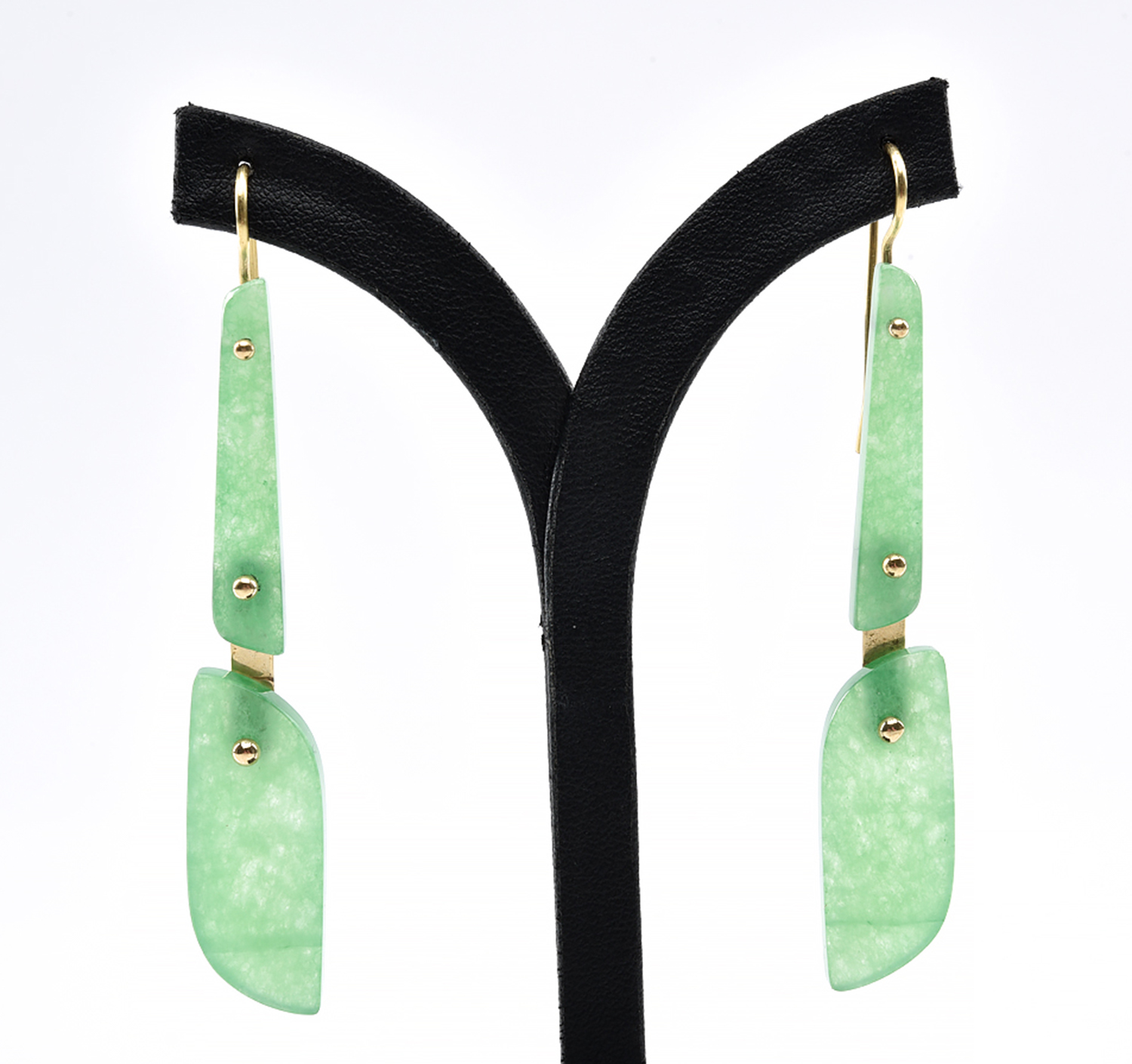 A PAIR OF MODERNIST JADE EARRINGS BY GOLDSMITH SEBASTIAN CILENTO, IN 18CT GOLD,TOTAL LENGTH 80MM
