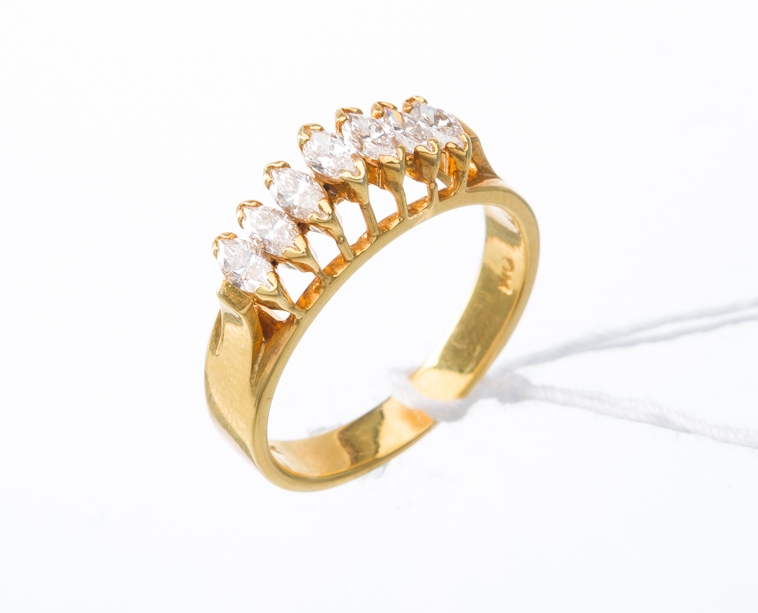 A MARQUISE CUT DIAMOND DRESS RING TOTALLING 0.56CTS, IN 14CT GOLD, RING SIZE M, 4.4GMS