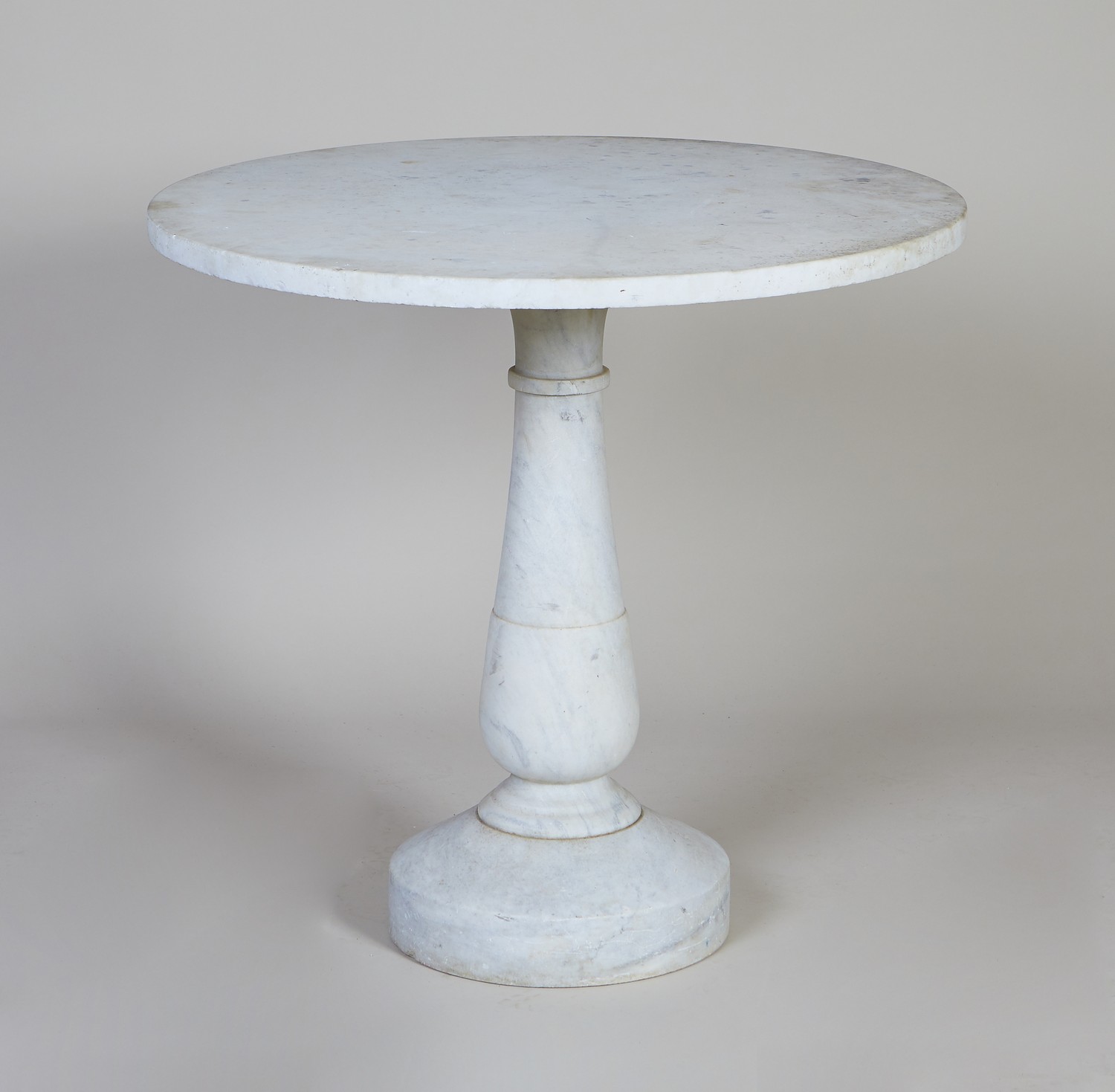 The circular top on a baluster pedestal and circular plinth.