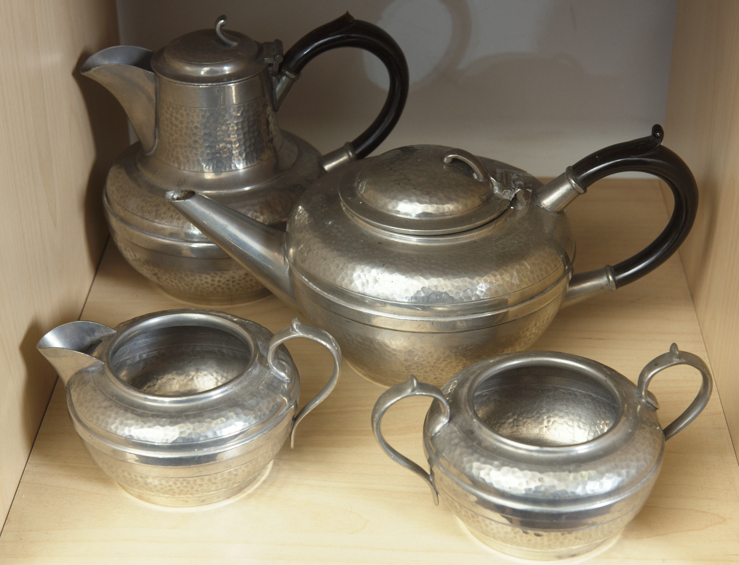AN ENGLISH PEWTER TEA SERVICE (A/F)