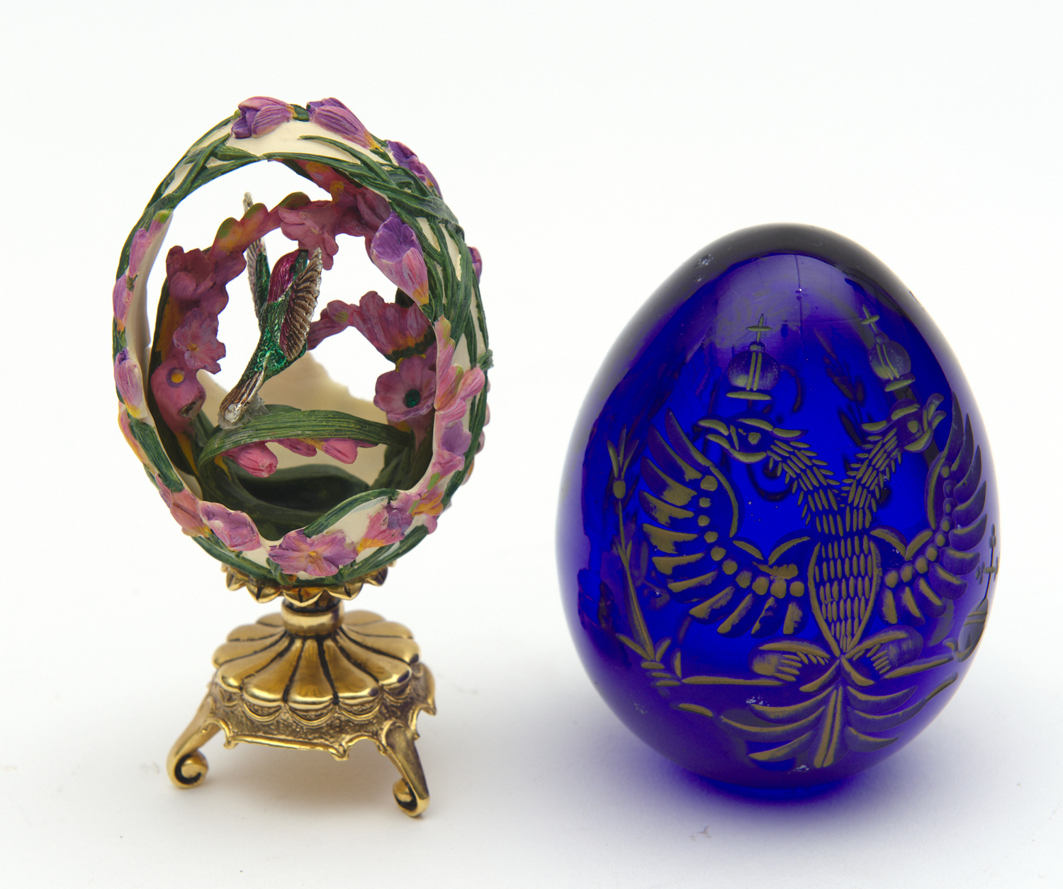 LIMITED EDITION HOUSE OF FABERGE EGG TOGETHER WITH GLASS ORNAMENT