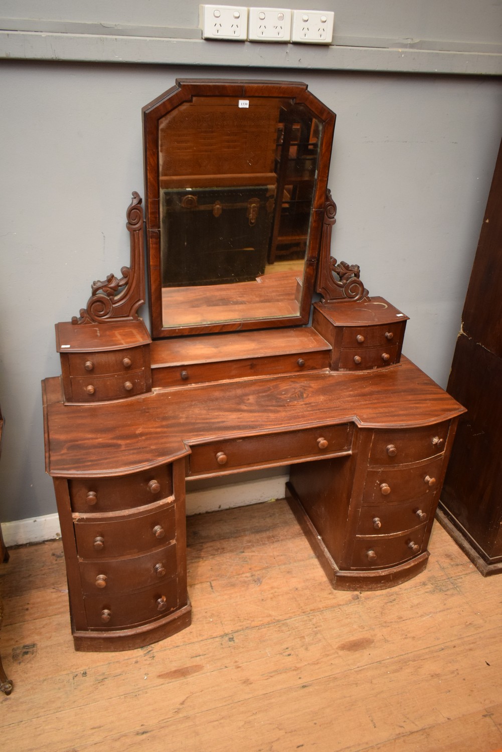 AN ANTIQUE MAHOGANY MIRRORED DRESSING TABLE (A/F) (154H X 122W X 54D CM)