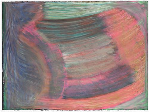 Robin Warren moved from Perth to Melbourne to pursue his art career at Arts Project Australia. He has a 20-year career that explores coloured and organically shaped abstract forms. Often working in Copic marker, oil pastel and texta on paper, his artwork is reminiscent of cellular organisms in bloom, which radiate from a central focal point. His Not titled 2019 drawing in pastel on paper leaves a softer impression than the work he is typically known for. Warren has worked at Arts Project since 2016, and has shown in numerous group exhibitions.