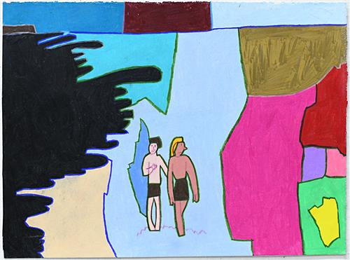 Anthony Romagnano is an emerging artist who works in pencil, paint and digital media. He often references popular culture images in his work, which he interprets and draws the outline for before adding blocks of vivid colour. Not titled (figures in landscape) from 2019, reminds us of happier times when wandering through nature with a lover or friends was easy to do. Romagnano has worked in the Arts Project studio since 2004 and presented his first solo show in 2008. He has exhibited in numerous national and international group shows, and his work is held in private collections Australiawide.