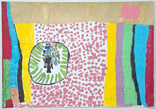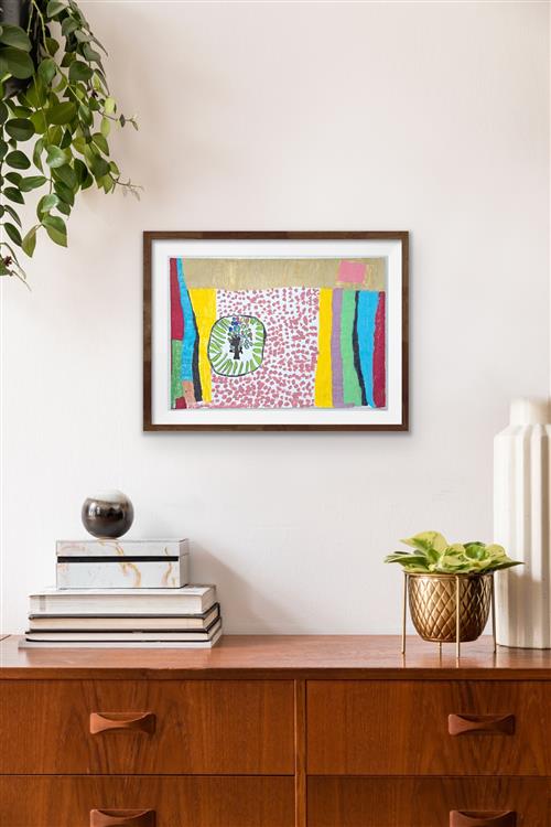 Fiona Longhurst is an established artist whose work is characterised by sensitive use of colour and illustrative pattern making. Her compositions, often layered with text, are playful while maintaining a harmonious balance of intricate detail and quiet space. You get the sense that her hand is moving fluidly across the paper as the work is ardently constructed. Not titled 2019 presents more of a considered, formal structure; however, the artwork has stayed true to her whimsical style. Longhurst has worked at Arts Project Australia since 1991. She has been included in numerous group exhibitions in Australia, USA and Belgium and her work is held in private collections in Australia.