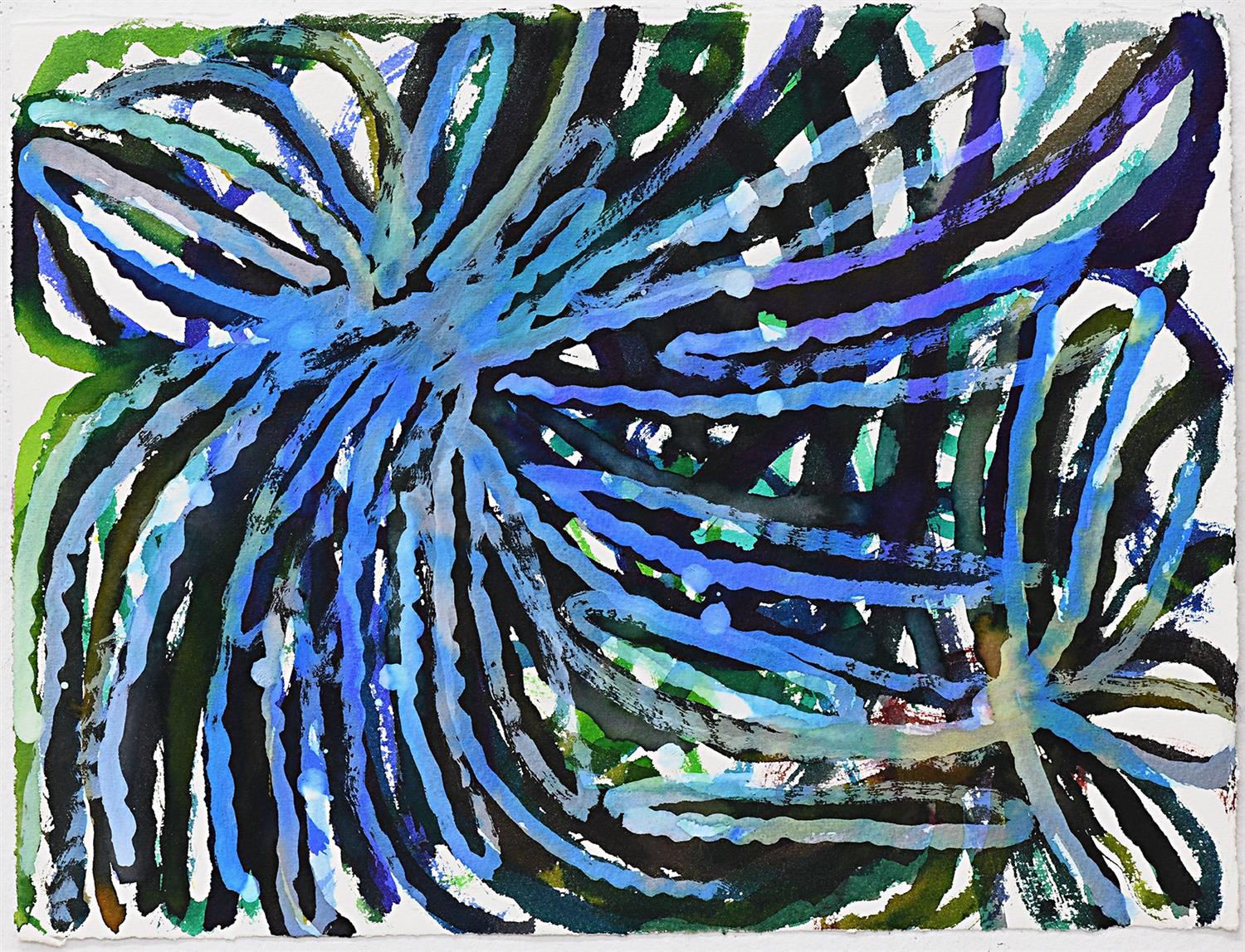 Philip Truett is an emerging painter whose work presents a nuanced understanding of paint mediums and colour combinations. Often harnessing the delicacy of ink wash and nib in his compositions, he builds layers of repetitious lines and colour to produce artworks that are rich and ephemeral. Not titled from 2019 is a stunning example of his free form, yet easily recognisable style. Truett has worked at Arts Project since 2005 and had his work exhibited in group shows in Melbourne. His work is held in private collections throughout Australia.