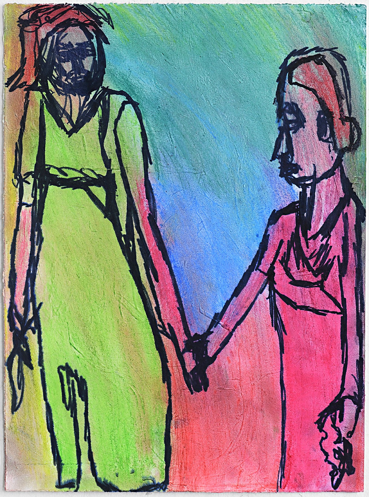 acrylic, marker and pastel on paper