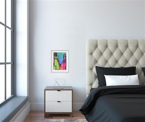 Adrian Lazzaro is an emerging multi-disciplinary artist working across painting, drawing, printmaking, soft-sculpture and artist zines. He is an avid journaler and single-mindedly focuses on reconstructing wrestlers, vampires and zombies into new compositions, infused with dark humour and overlayed with political and social commentary. Not tilted (marriage) 2018 riffs off his related works that support gay marriage and marriage equality. Lazzaro has worked at Arts Project since 2004, and his work has been exhibited in group shows nationally and internationally. His work has been acquired by Moreland City Council and is held in private collections Australiawide.