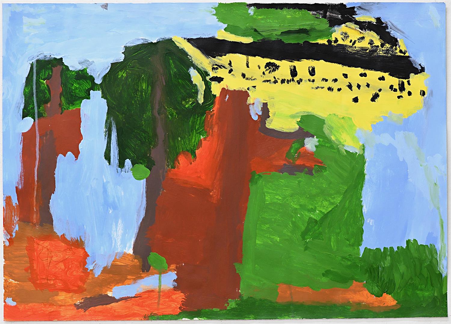 Chris Sahyoun is an emerging painter who applies various mediums, including greylead pencil and charcoal over his acrylic paintings creating intriguing landscapes. He has exhibited infrequently and, when looking at his 2019 artwork Not titled, one may wonder why. This stunning abstract acrylic and gouache painting deftly illustrates his view from the second-storey window of Arts Project's Northcote studio. The delicate mark-making over the bold acrylic background caught our eye, allowing the viewers' imagination to run free.  Sahyoun has worked in at Arts Project since 2012 and has exhibited in group exhibitions in Melbourne.