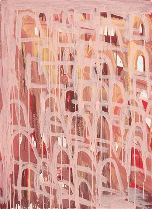 Warren O'Brien is an abstract painter whose artwork reflects the rhythm and repetition of his process. His layering of vibrant colours affords the work depth, while the free brushwork and dripped paint evoke the spontaneous style of abstract expressionism. His use of the repeated arc motif—similar to the architectural form of an arched window—is magnetic in effect, drawing attention to the complex layers he builds into his work. This is one of two exceptional paintings that appear in this auction and should be considered as a pair or individual artwork. O'Brien has worked at Arts Project since 2005. He has shown in numerous group exhibitions including Melbourne Art Fair. His work is represented in private collections throughout Australia.