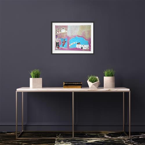 Emily Dober is an emerging painter and illustrator whose works focus on the feminine form as portrayed in magazines and advertisements. Her work for the auction, Not titled, features haphazardly placed beauty and fashion products juxtaposed with her signature slabs of shimmering, layered colour. The piece is ambiguous in its portrayal of these objects; are they to be cherished as we are led to believe, or isolated and their value destabilised. Dober has worked at Arts Project since 2010, and has exhibited in group shows in Australia.