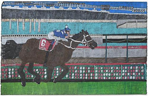 Adrian Salvatore is an emerging artist who creates intricate drawings of sporting figures in action as well as prominent figures in films. His technique elicits vivid and incredibly detailed artworks, highlighting his refined sense of colour and composition. Winx, for example, is an exemplary piece that highlights how he immortalises iconic, perfectly captured moments, speaking to notions of fandom and camaraderie . Salvatore has worked at Arts Project since 2011. He has exhibited in numerous group exhibitions and has artworks in public institutions in Melbourne as well as private collections in Australia.