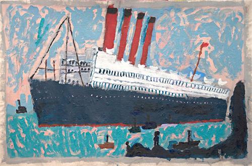 Malcolm Sturrock works across a wide range of media including painting, printmaking, soft sculpture and ceramics. Sturrock's eclectic approach to his practice inspires the exploration of a wide range of themes and motifs including ships, animals and landscapes. Not titled captures wonderfully the essence of the nautical scene depicted with free, loose brush strokes. One can almost sense the chill in the air and the sound of horn blasts. Malcolm Sturrock has been working in the Arts Project studio since 2004.