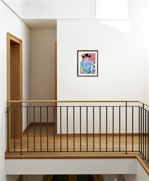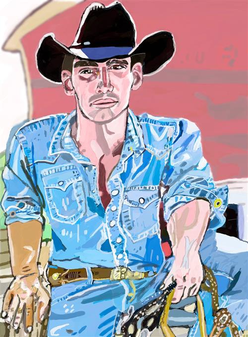 Bobby Kyriakopoulos is a mid-career artist encompassing painting, drawing and digital art in his practice. Though his subject matter is diverse, a sense of nostalgia threads though the works, connecting them. Cowboys is a tender portrait, the character posing deliberately, expression set in wistful gaze, comfortable yet aware he is being watched. Bobby Kyriakopoulos has worked at Arts Project Australia studio since 2011. His work is held in the National Gallery of Victoria collection.
