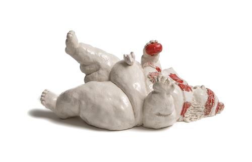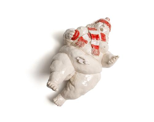 Chris Mason explores within his practice a range of mediums including painting, drawing, ceramics and soft sculpture. His predilection for creating evocative voluptuous female forms is seen most illustriously in his ceramic sculptures, depicting ladies in various states of contentment. Oh My God Nude Woman as a Sydney Swans Supporter is a delightfully spirited piece, the tiny bird perched on the figure's round belly the veritable piece de resistance. Chris Mason has worked at Arts Project studio since 1997. He has presented solo exhibitions at Darren Knight Gallery, Sydney and Arts Project and been curated into group exhibitions in Australia and the USA. Collections include the National Gallery of Australia, State Library of Victoria and National Gallery of Victoria. His work is held in private collections worldwide.