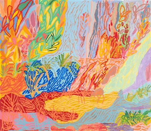 Georgia Szmerling is a multi-disciplinary artist whose practice includes ceramics, painting and drawing with a dominant interest in the portrayal of the natural world. Rich in texture and highly expressive, her wild plant formations give sense of lyrical movement, while the artist's abstract ceramic creatures exude a tender, fairytale charm. Waterfall is a beautiful example of Szmerling's 2D practice, demonstrating the artist's signature feathery brushwork. Georgia Szmerling has been working at Arts Project Australia since 2003 and had exhibited widely in Australia.
