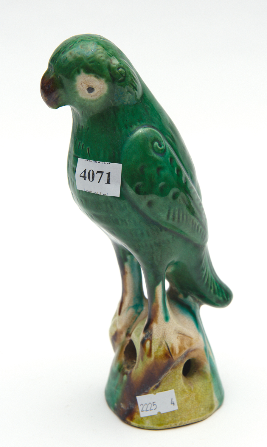 A 19TH CENTURY CHINESE GREEN GLAZED PORCELAIN PARROT (SMALL)