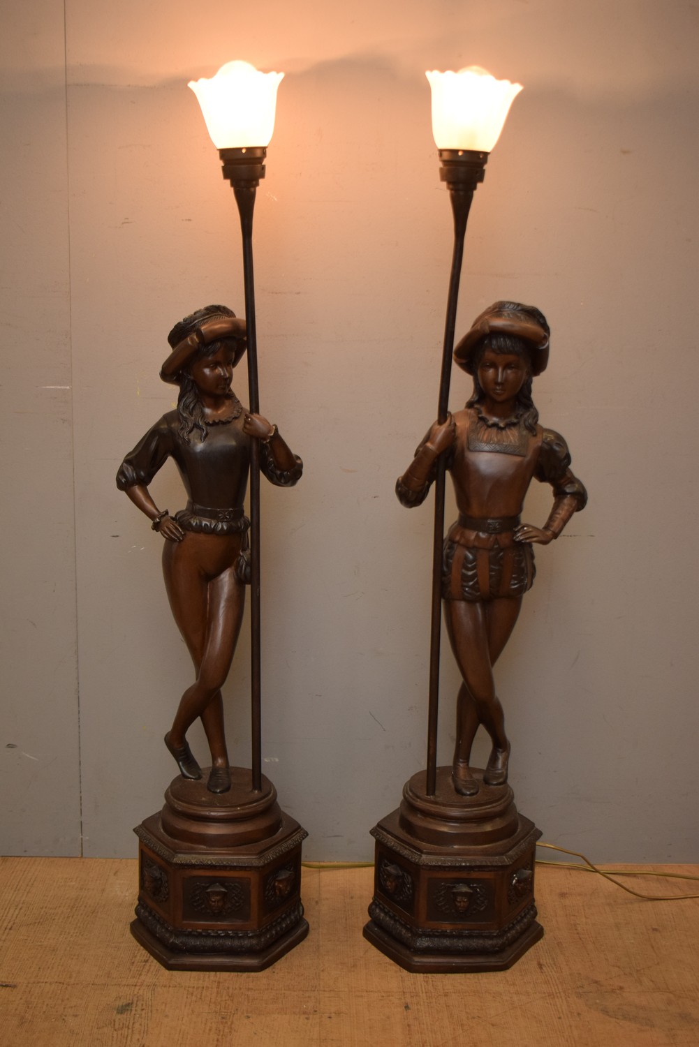 A PAIR OF LARGE VINTAGE BRONZE FIGURAL STANDING LAMPS (117 CM H)