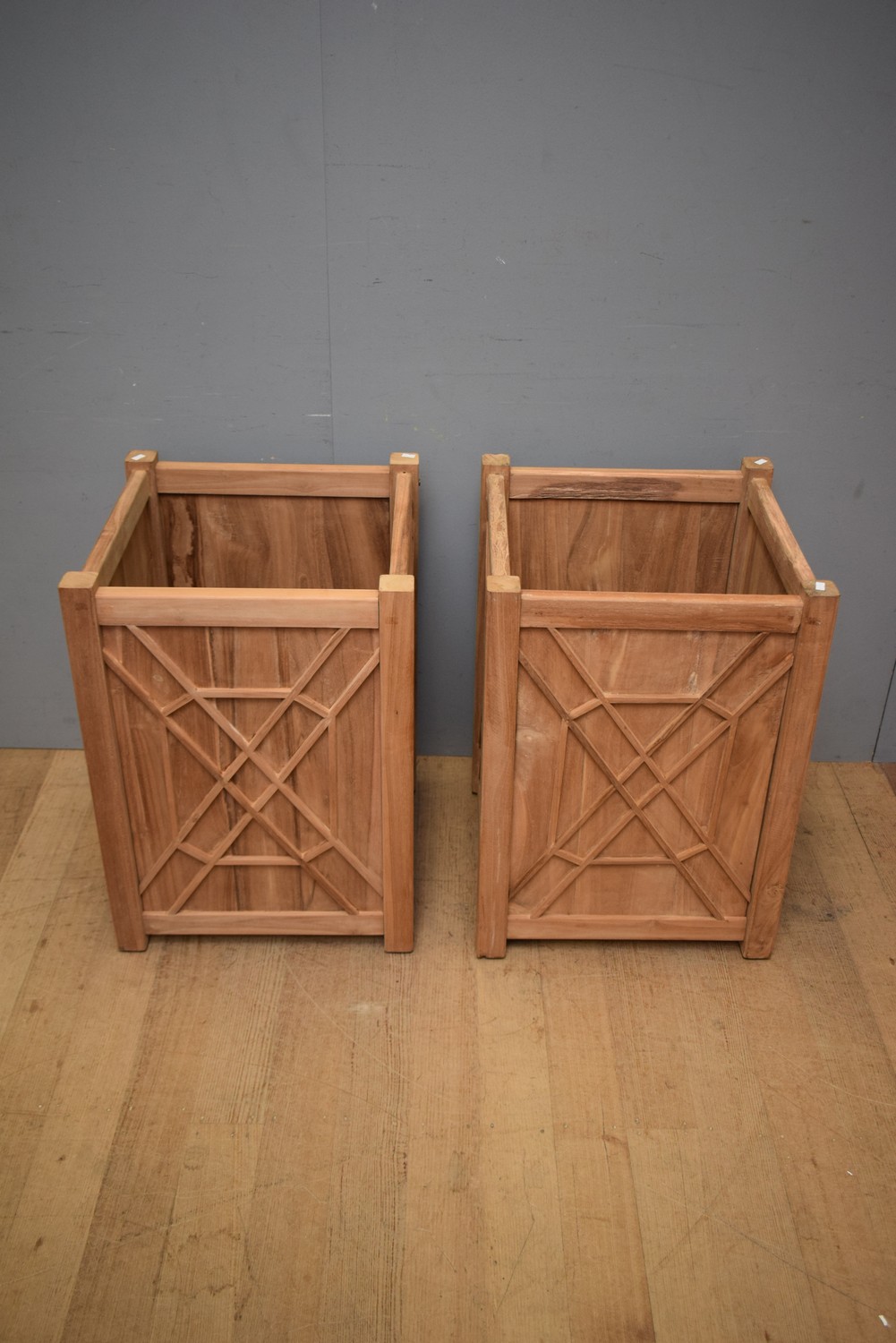 A PAIR OF CHIPPENDALE STYLE TEAK PLANTERS (70.5H X 50W X 50D CM)