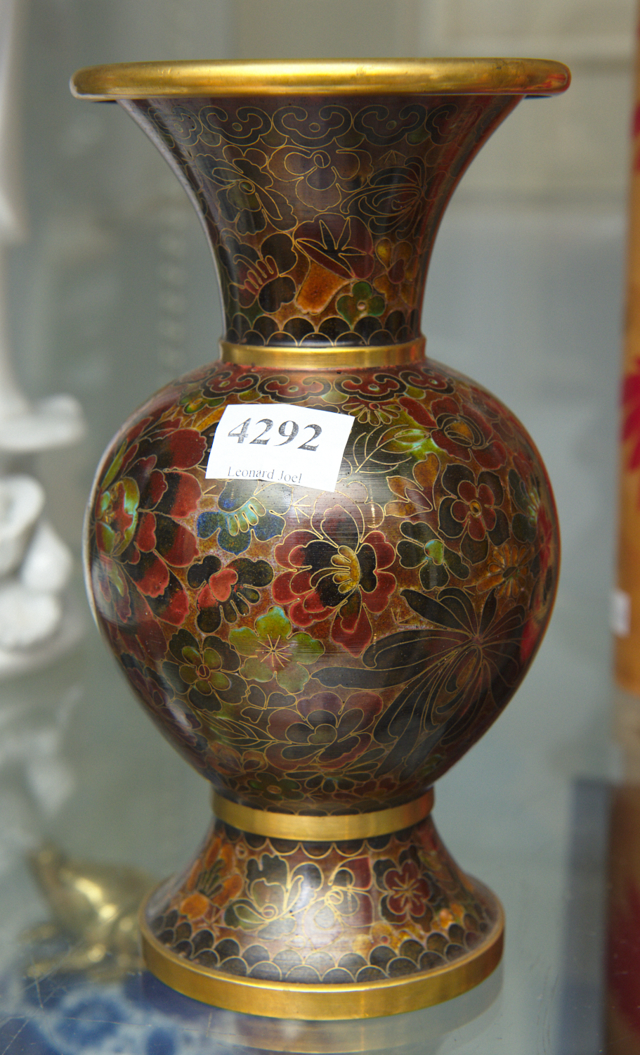HIROE SWEN, RECTANGULAR VASE, STEEL MATT GLAZE AND OVERLAY DECORATIONS, H.20CM W.29CM