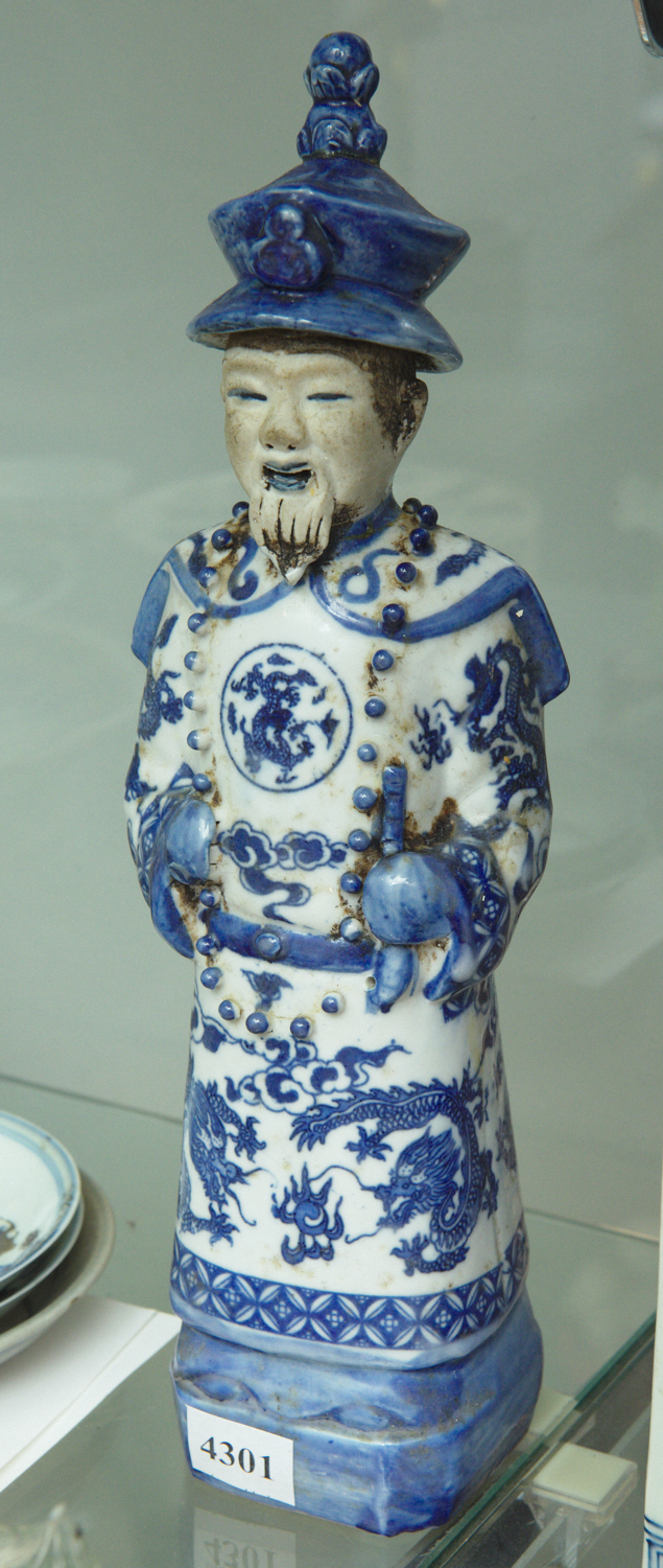 AN ANTIQUE CHINESE STATUE WITH STAMP TO BASE (A/F)