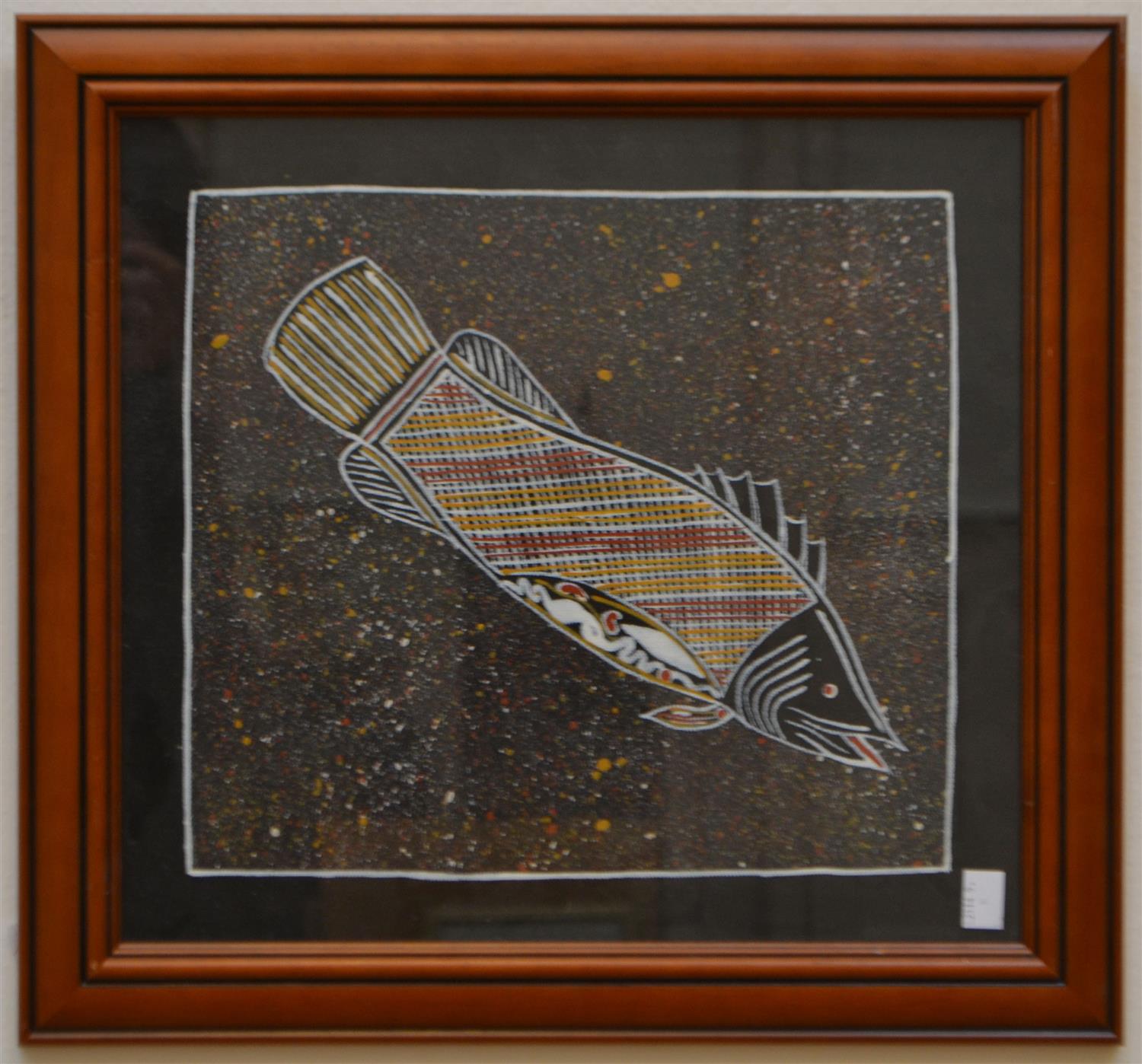 SAM ASSAN, BARRAMUNDI DREAMING, ACRYLIC ON CANVAS, 27 X 31CM, FRAME SIZE: 42 X 45CM, CONDITION: VERY GOOD
