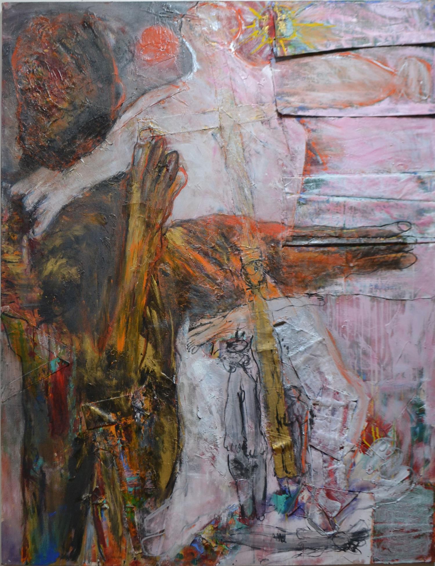 PAT HENRY, SUBUGATION 1990, MIXED MEDIA ON CANVAS, 215 X 168CM, CONDITION: GOOD