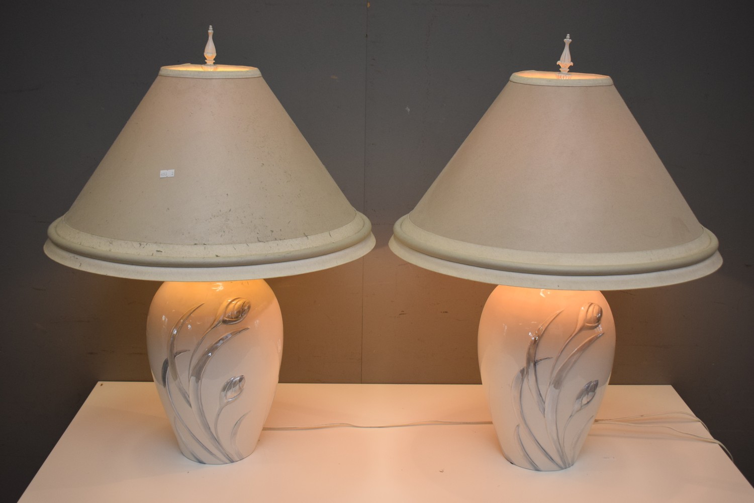A PAIR OF DECORATIVE PORCELAIN ART NOUVEAU STYLE LAMPS (75 CM H)