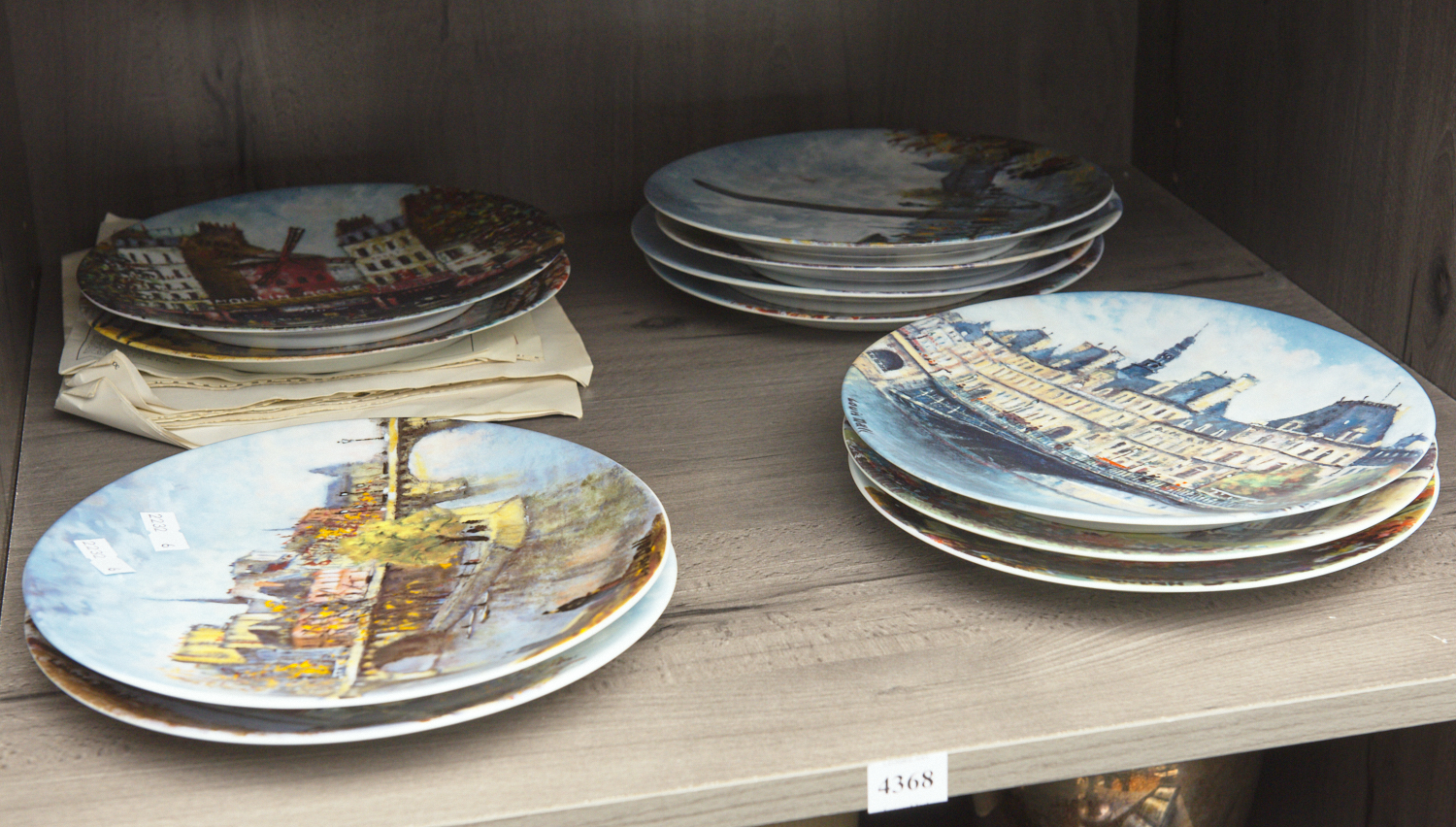 SHELF OF CABINET PLATES, LIMITED EDITION LIMOGES
