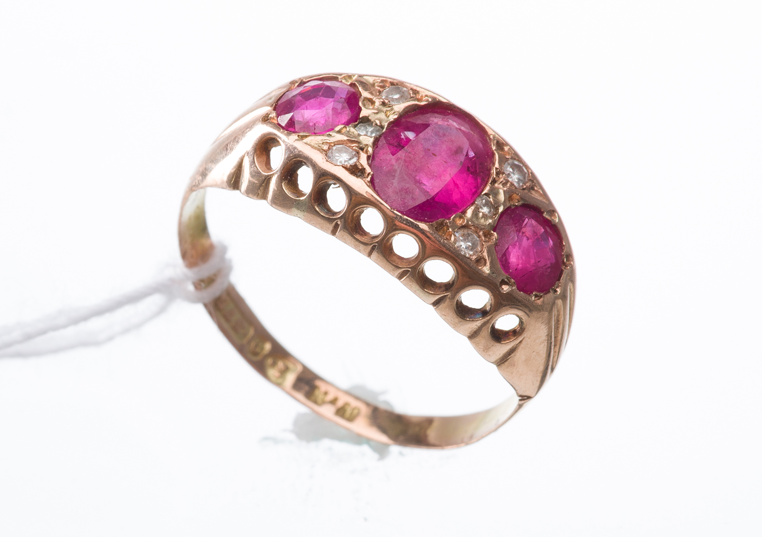 AN ANTIQUE RUBY AND ROSE CUT DIAMOND RING IN 9CT ROSE GOLD, HALLMARKED CHESTER, 1912, MAKER W.N, SIZE L, 1.8GMS