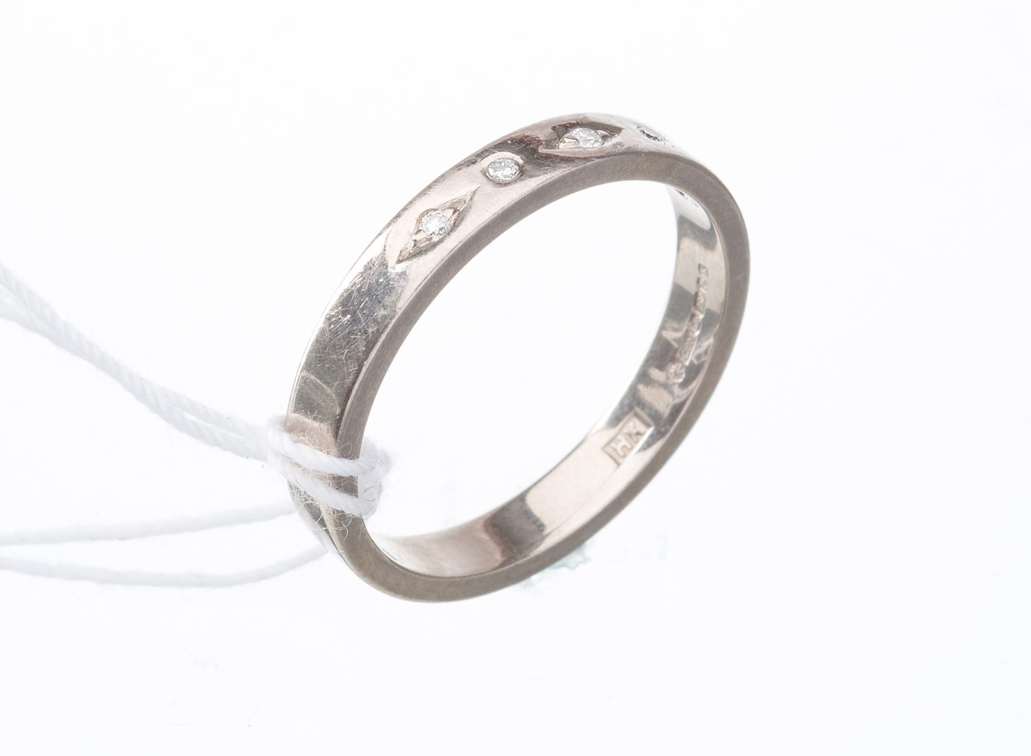 A DIAMOND SET WEDDER IN 18CT WHITE GOLD, SIZE N, 3.8GMS