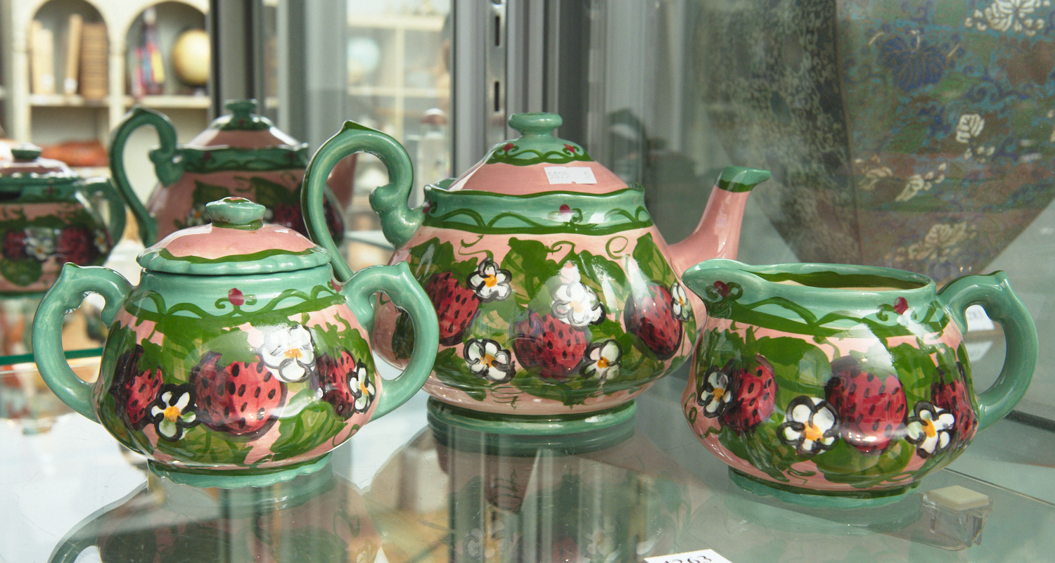 A THREE PIECE AUSTRALIAN GLAZED EARTHENWARE TEA SET BY SALLY BARKER