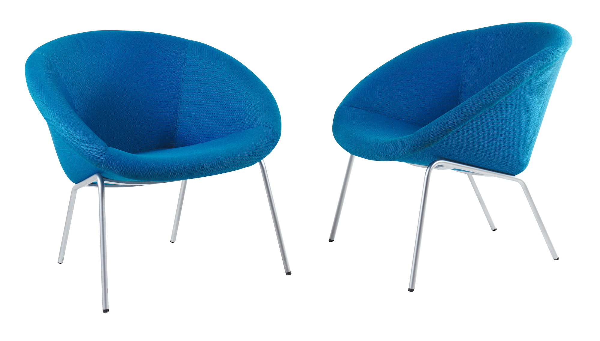 Blue cotton fabric on polised aluminium legs