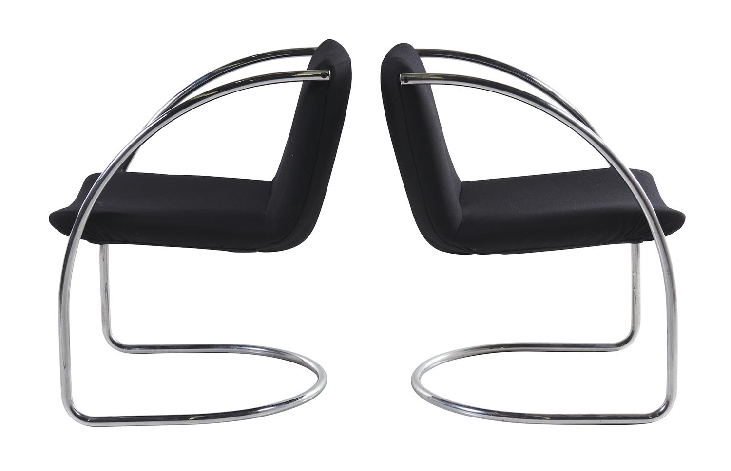 All chairs have been reupholstered in black stretch cotton. The polished chrome has no rust and all chairs are structurally sound.