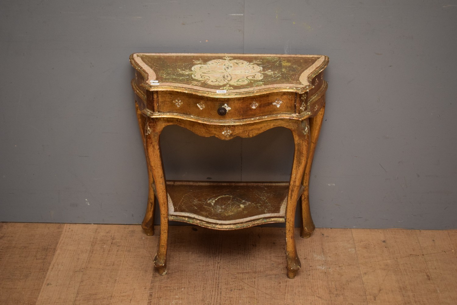 A FLORENTINE STYLE SINGLE DRAWER BEDSIDE (63H X 60W X 32D CM)