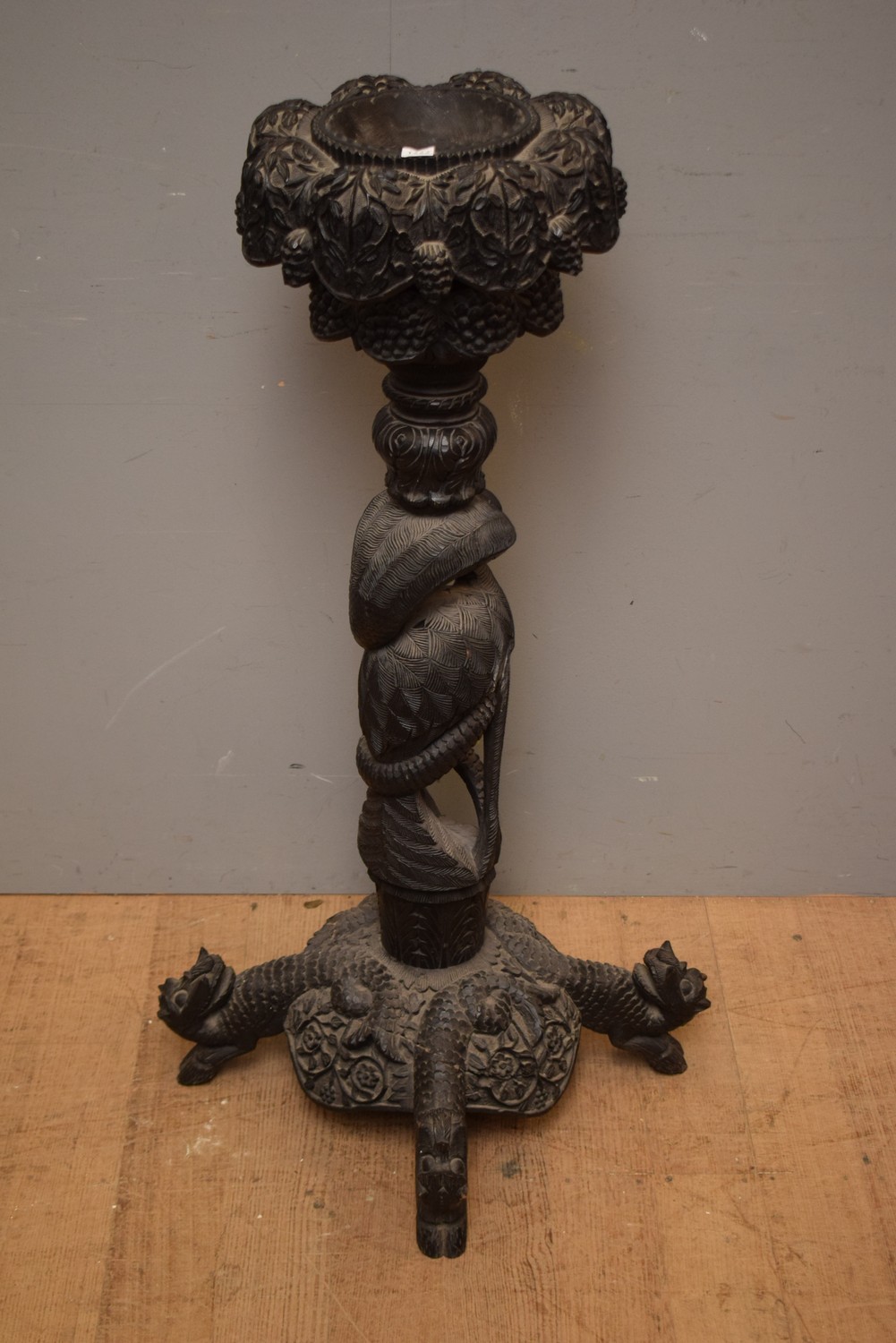 A HIGHLY DECORATIVE CARVED CANDLE HOLDER (102 CM H)