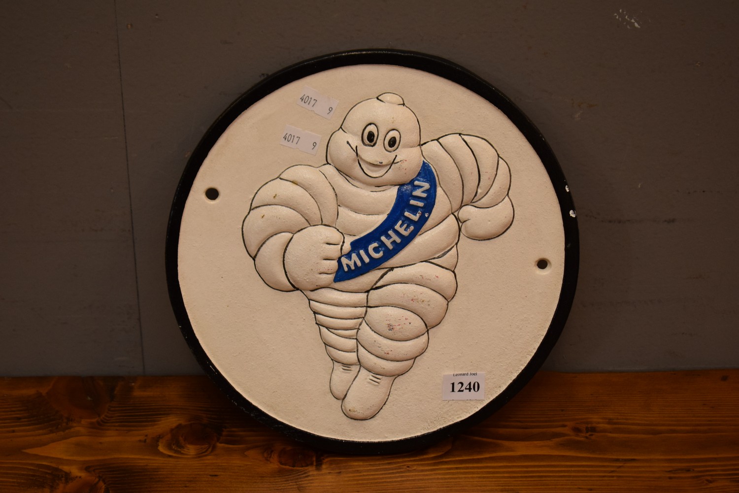 A MICHELIN MAN CAST IRON WALL PLAQUE (24 CM D)