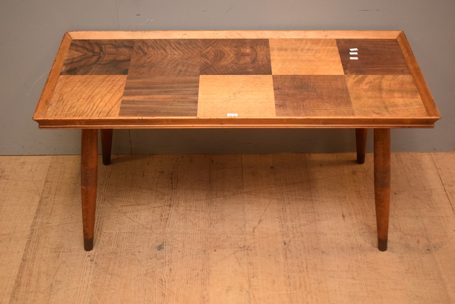 A MID-CENTURY INLAID COFFEE TABLE (A/F) (48H X 101W X 47D CM)