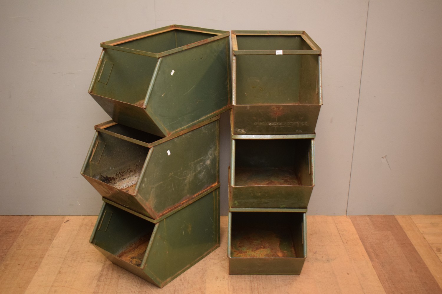 A COLLECTION OF SIX METAL STORAGE CONTAINERS (A/F) (39H X 59W X 57D CM)