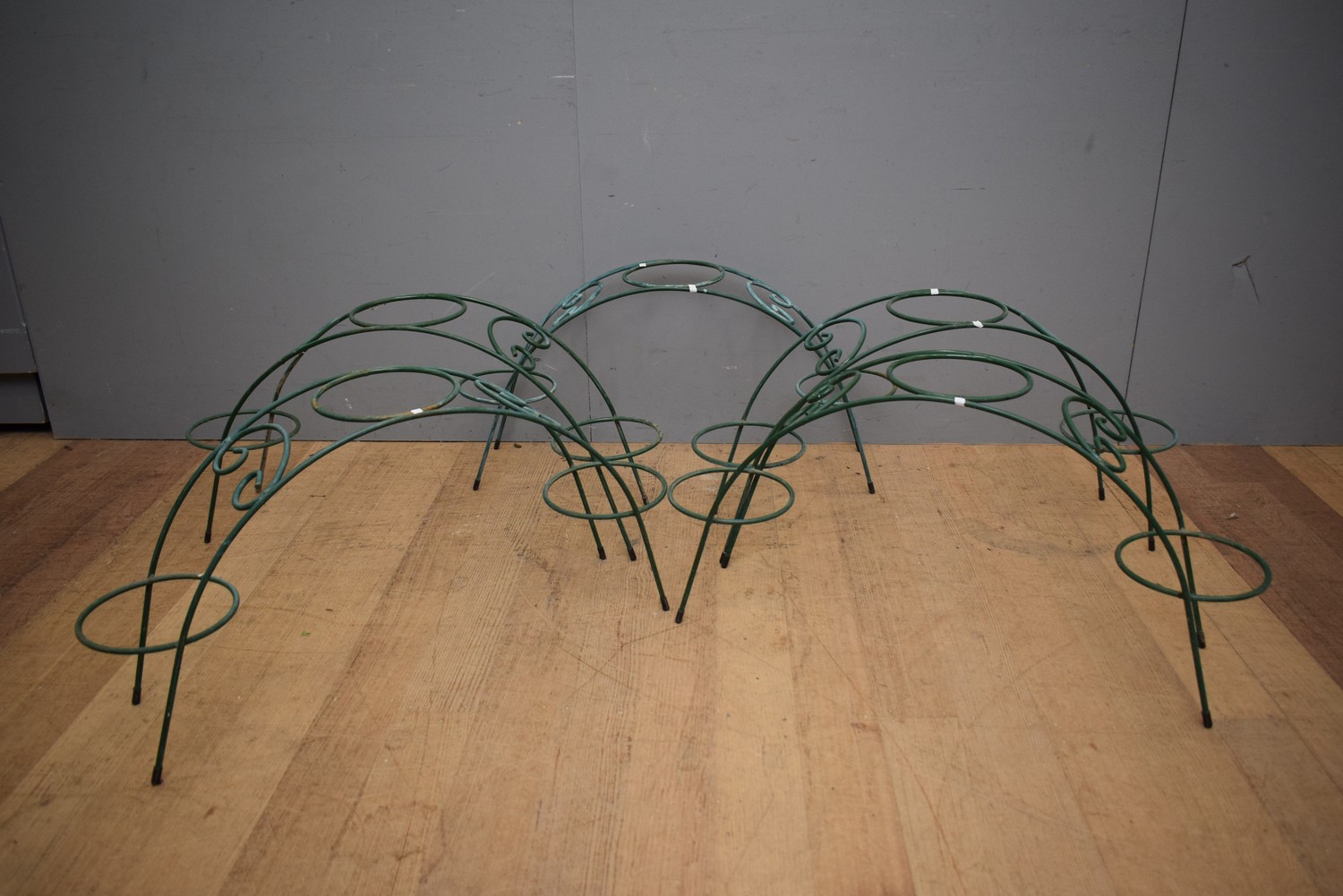 A COLLECTION OF FIVE PLANT STANDS (42H X 83W X 22D CM)