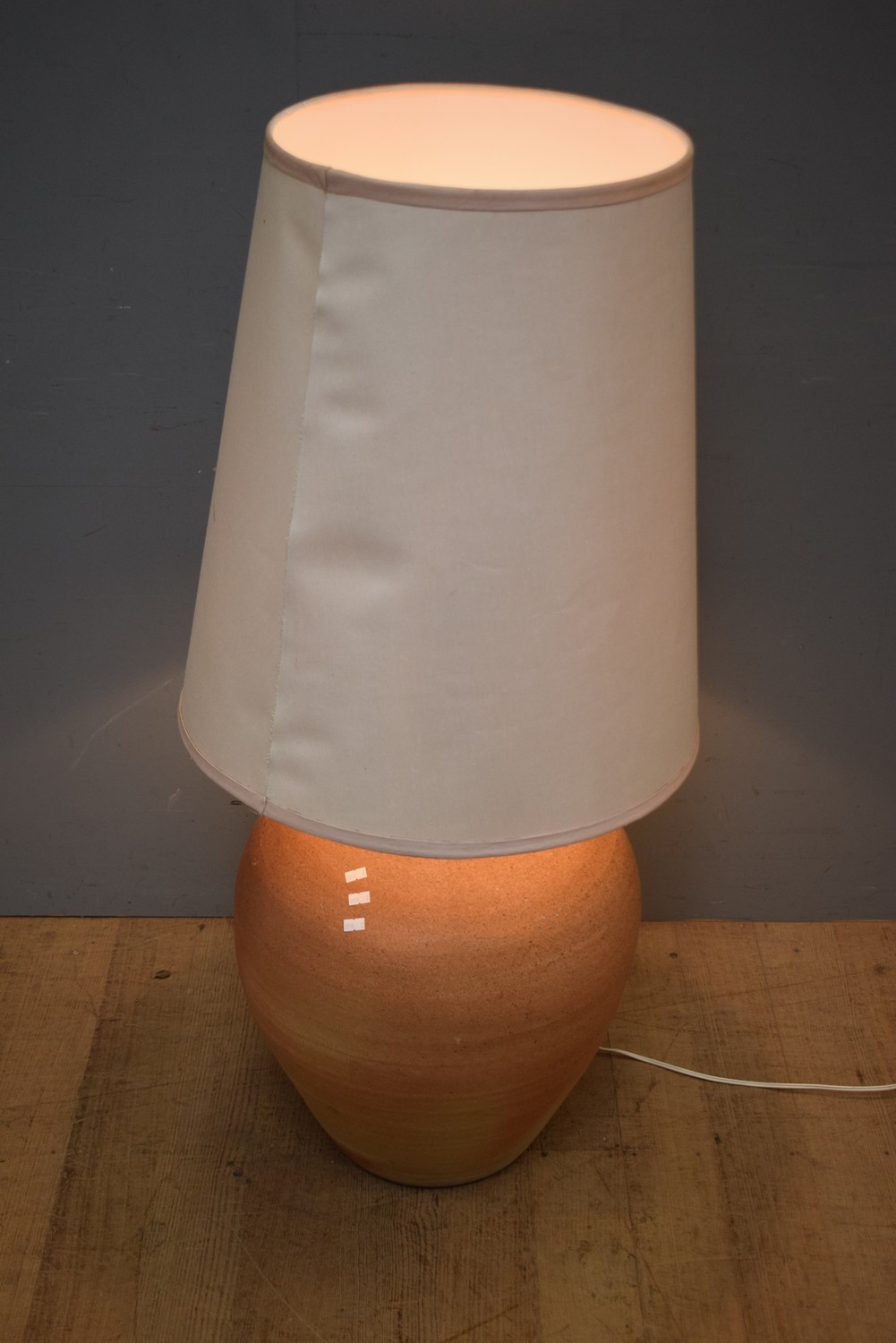 A SUBSTANTIAL STONEWARE LAMP (SHADE A/F) (120 CM H OVERALL)