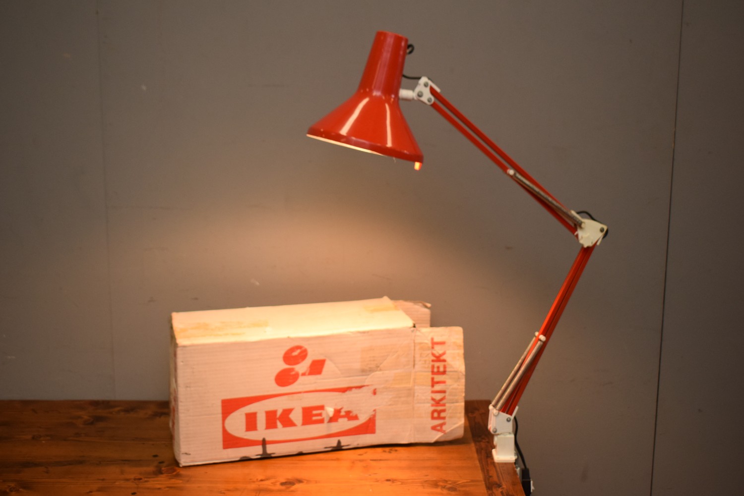 A VINTAGE IKEA DESK LAMP WITH CLAMP, MADE IN DENMARK, BOXED