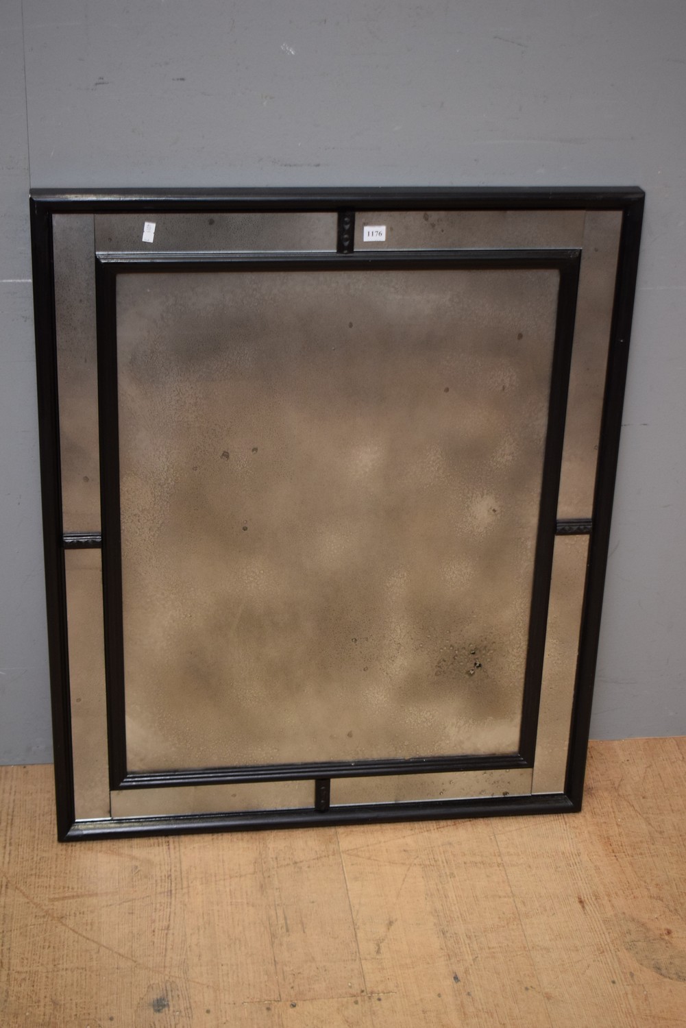 AN EBONISED WOODEN FRAME WITH DISTRESSED MIRROR PLATE (87 X 72 CM)